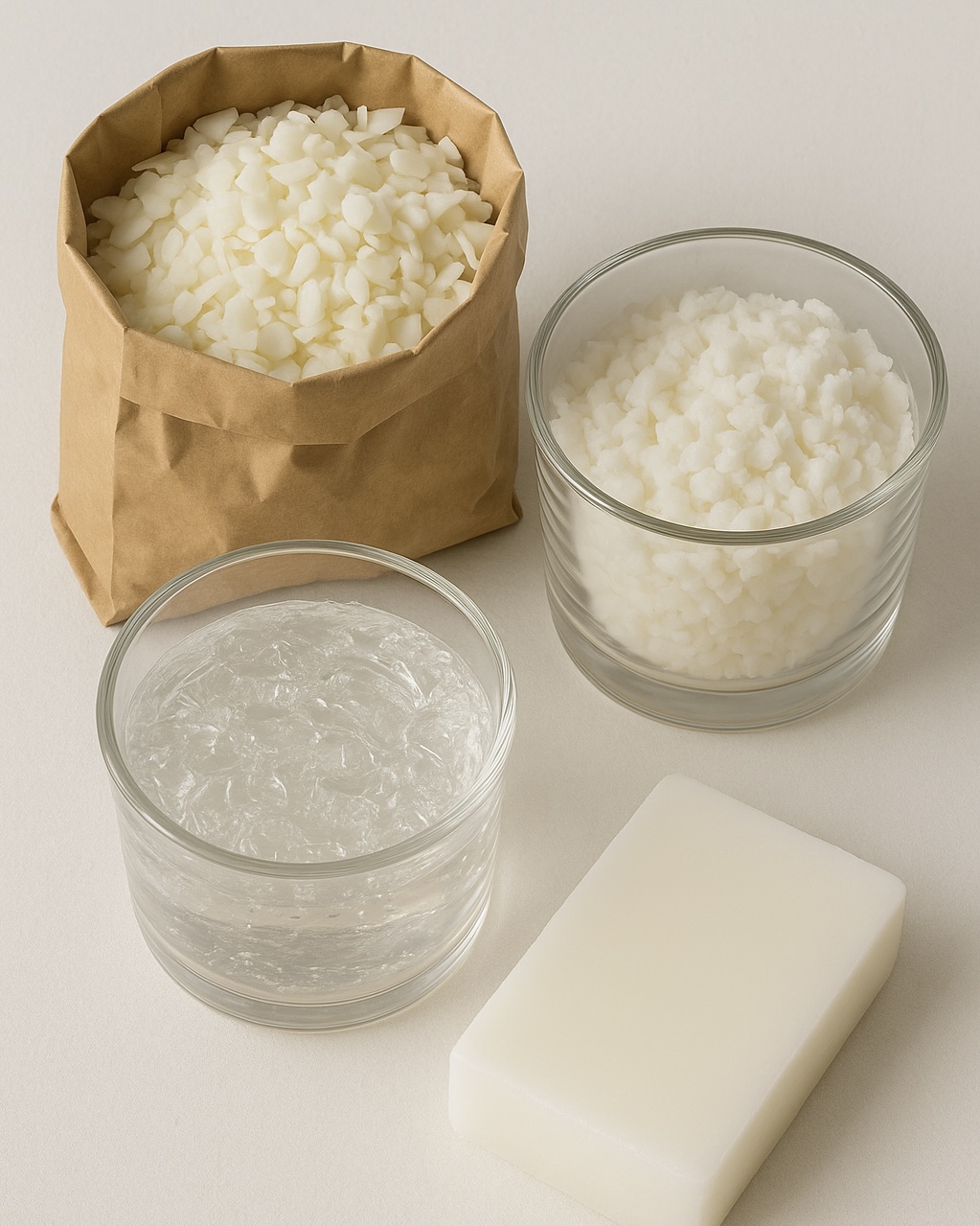 A base de toda vela. A cera define o tempo de queima, a textura e o acabamento final. Escolher o tipo certo é o primeiro passo para garantir uma queima uniforme e duradoura.